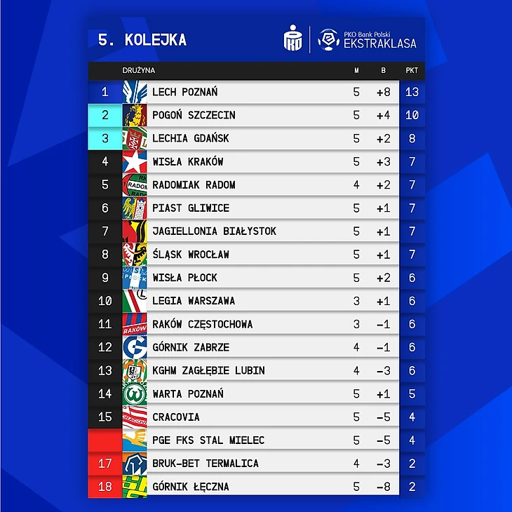 Матчи «Легии» и «Ракува» после их успешных матчей в еврокубках были перенесены, чтобы представители страны в Европе могли лучше подготовиться к ответным матчам. Но и семь матчей вышли яркими на эмоции и голы: «Заглембе» попыталось взять реванш за 0:4 в прошлом сезоне, Пясецки наконец забил ударом через себя, а Йебоа продемонстрировал в Ленчне свою технику.