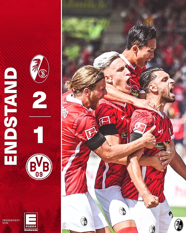 Первый же толковый выпад «Фрайбурга» закончился фолом прямо на подступе к штрафной гостей. Грифо образцово исполнил стандарт – 1:0. На старте второй половины игры образцовую контратаку завершил уже Шаллаи, тем самым удвоив преимущество «Фрайбурга» и вогнав болельщиков гостей в настоящую тоску. Вскоре «шмели», конечно, смогли отыграть один мяч усилиями Беллингема. Он просто вынудил Кейтеля отметиться автоголом, но этот мяч скорее стал случайностью, чем вытекал из логики игры. Ну а до конца встречи гости так и не нашли подхода к обороне и заслуженно уехали с поражением.