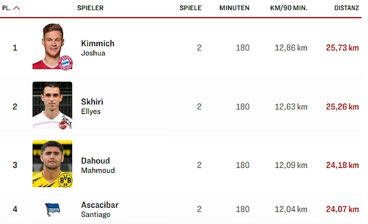 *игрок – кол-во игр – кол-во минут – в среднем км за 90 мин – всего км