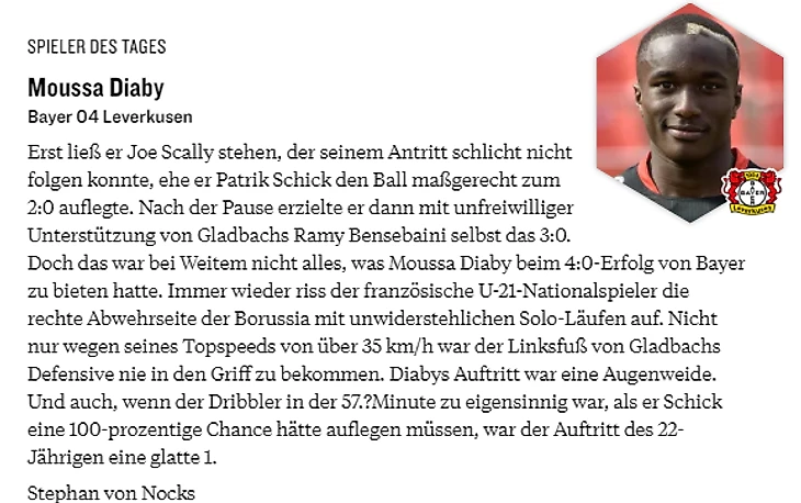 Во второй половине гладбахцы продолжали играть довольно рискованно на встречных курсах, однако результата это не дало. Они получили ещё два, и вновь блистал Баккер. Сначала он идеальным кроссом ассистировал Диаби, а потом отдал предголевую на Амири под занавес встречи.