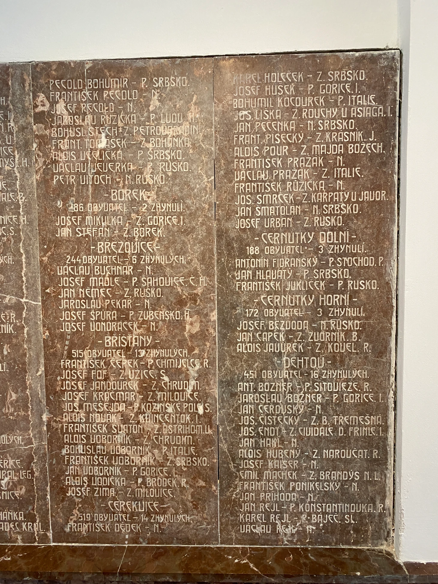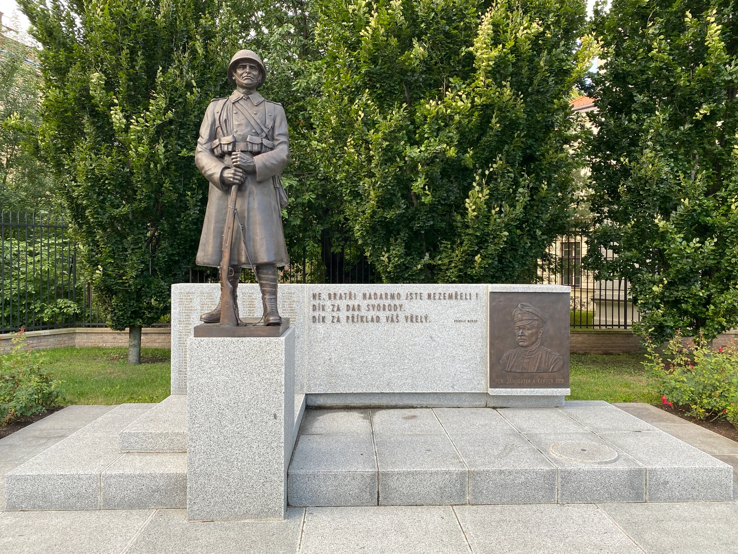 В историческом центре, помимо стандартных для чешской архитектуры строений, мы нашли довольно интересный памятник. Это памятник чехословацким легионерам и, в частности, Яну Гайеру. Последний был помощником командира полка и принял непосредственное участие в нескольких сражениях против большевиков. В том числе — в сражении у станции Липяги 4 июня 1918 года, за 4 дня до взятия Чехословацким корпусом Самары. Это столкновение считается одним из первых крупных сражений Гражданской войны в России. Ян Гайер под Липягами погиб, но белочехи одержали победу.