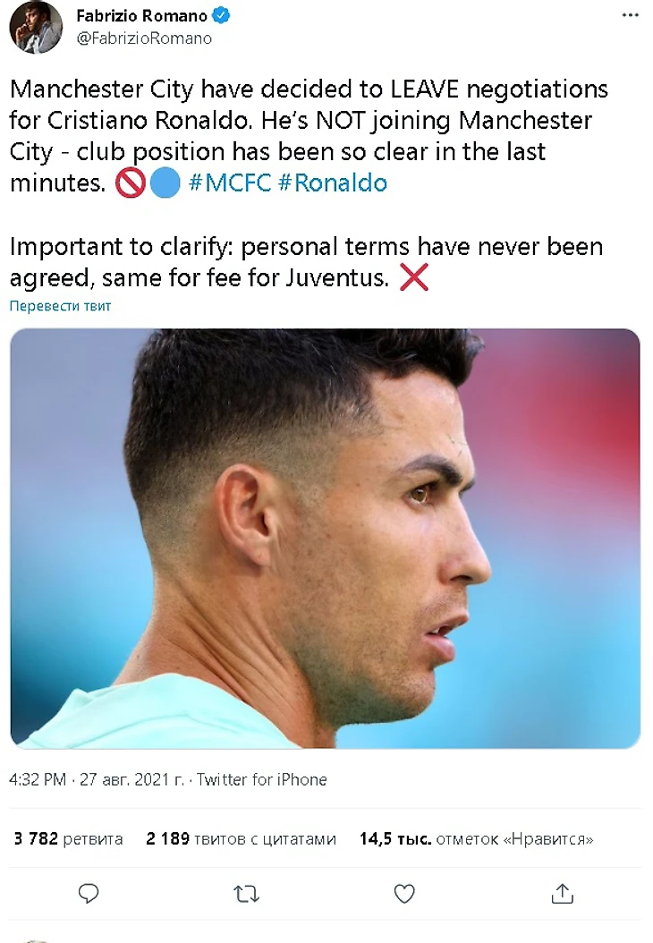 «Манчестер Сити» решил ОТКАЗАТЬСЯ от переговоров по Криштиану Роналду. Он НЕ перейдет в стан «горожан» – позиция клуба была предельно ясна в последние минуты.