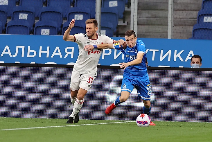 Хозяева, как ожидали букмекеры, забрали мяч и начали атаковать с первых минут. Самым острым был Макаров - два, пусть и не точных удара были записаны на счет Динамо именно его работой. На 6 минуте у Динамо первый опасный момент - Фомин бил из убойной позиции, но в створ не попал. Я, как человек, посмотревший все игры Локомотива в начале этого сезона, с уверенностью могу сказать, что Динамо куда острее, быстрее и интереснее, нежели ЦСКА или Краснодар. Так к собственным воротам железнодорожников прижимал только вездесущий Зенит. Динамо постоянно было в атаке, а Локомотив по первым 10 минутам толком не пересекал половину поля с мячом (образно). В этом нет ничего плохого - Марко Николич избрал единственную верную тактику на данную игру. Раскрываться с таким соперником просто нельзя.
