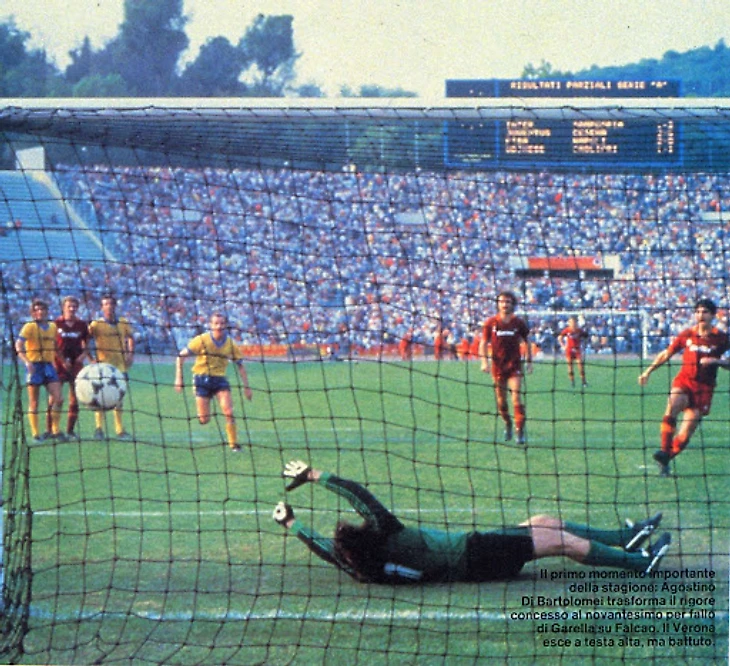 19 cентября 1982, 2-й тур, Рома-Верона (1-0). Ди Бартоломеи вырывает победу с пенальти на последней минуте.