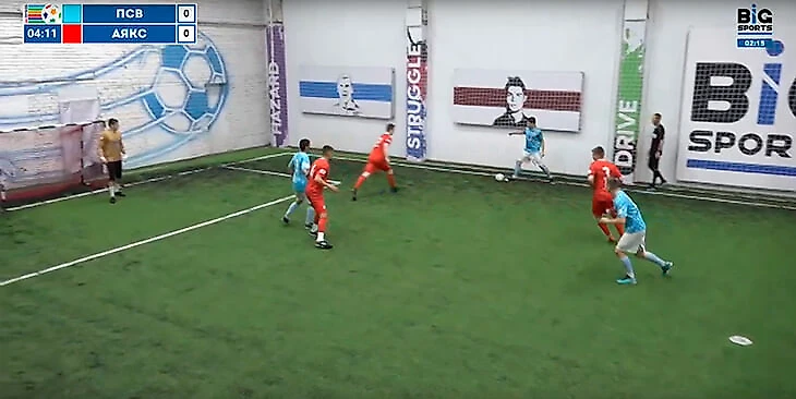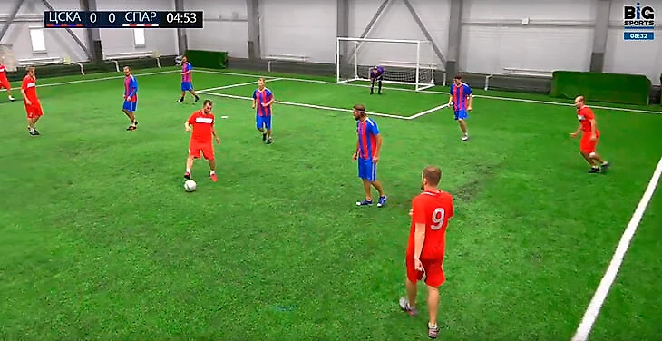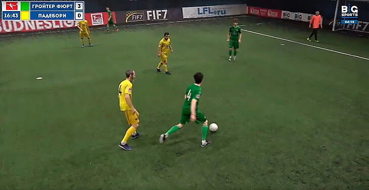 Цветовая гамма меняется – зеленый «Гройтер Фюрт» рубится с желтым «Падерборном» в соревновании под названием «5x5 Budnesliga» (именно так, с грамматической ошибкой в названии). На часах 4 утра. Надписи на бортиках вокруг поля сообщают об организаторах турнира – ЛФЛ (любительская футбольная лига) и Big Sports (эта компания отвечает за организацию трансляций таких матчей). Собственно, на ее сайте я и смотрю стримы, которые ведутся в ночи из неназванных московских манежей.