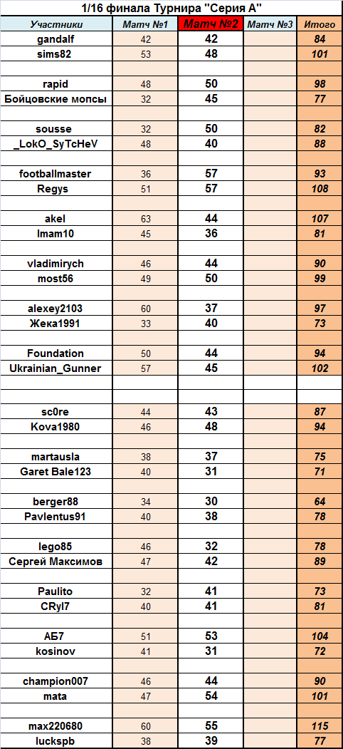 1/16 финала H2H Calcio Fantasy. Вторые матчи