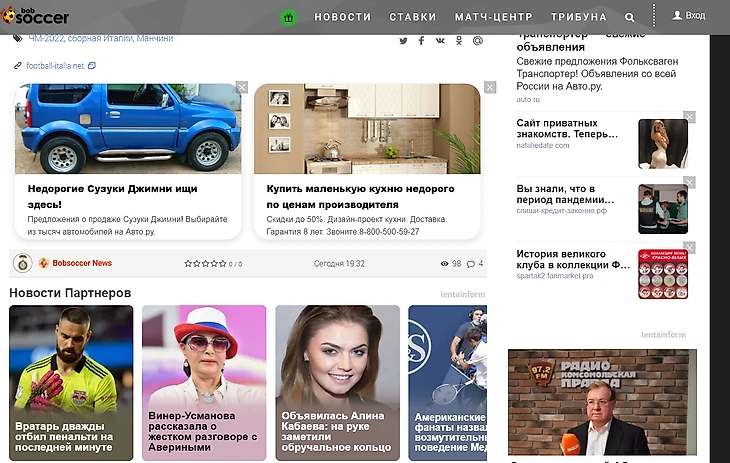 Не стоит забывать и о том, что есть и реклама, которая располагается сразу после статей, “от партнеров” с порой дикими желтушными заголовками. В последние дни стал замечать так называемую “персональную рекламу”, которая появляется прямо посреди новости/статьи/заметки. Иногда складывается ощущение, что рекламы на сайте больше, чем футбольного контента.