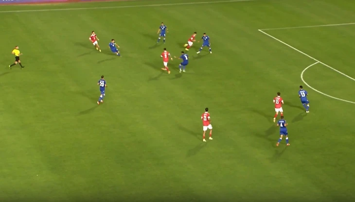 Денис, кстати, выполнял роль, которую в первой игре исполнял Ионов (он пропустил матч из-за травмы) – был ближе всех к чужим воротам и активно взаимодействовал на фланге с Самошниковым и Головиным.