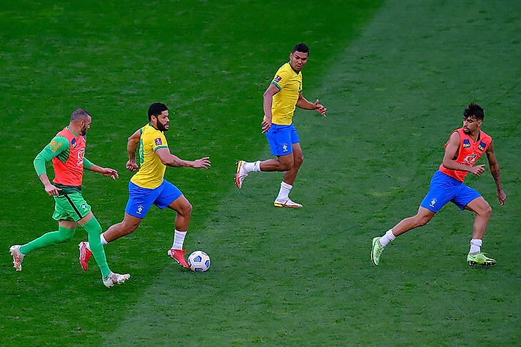 Бразильцы чувствовали себя расслабленно – стояли на поле, смеялись и катали мяч.