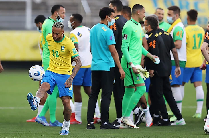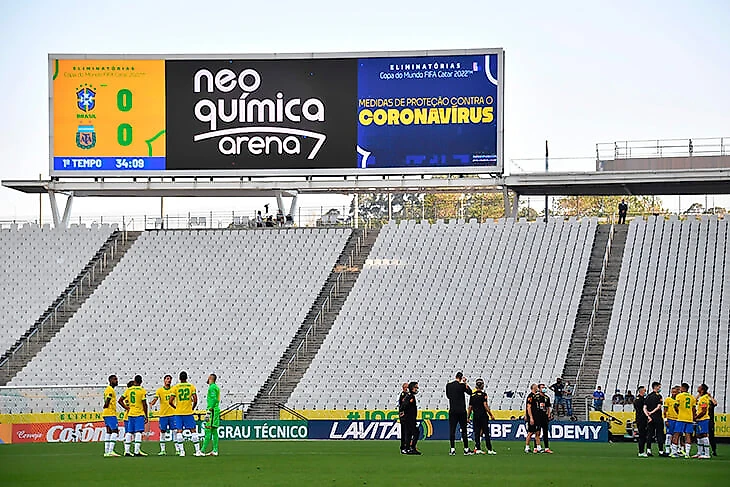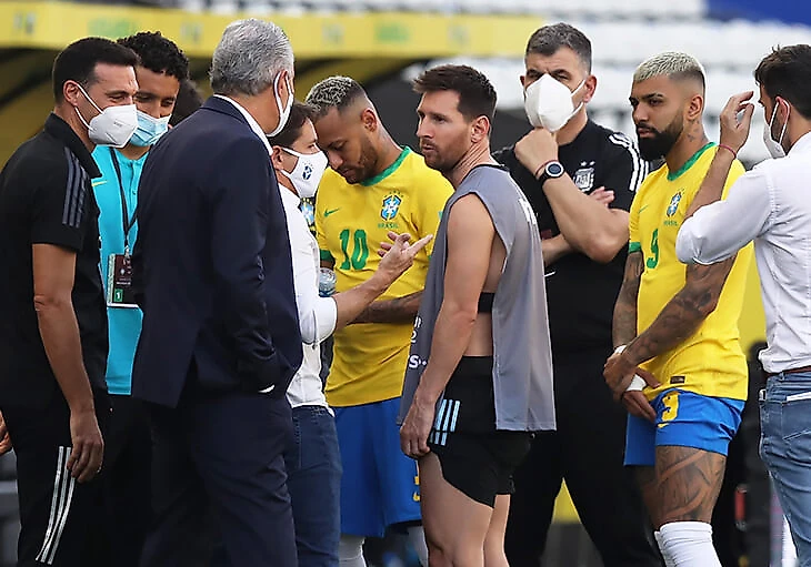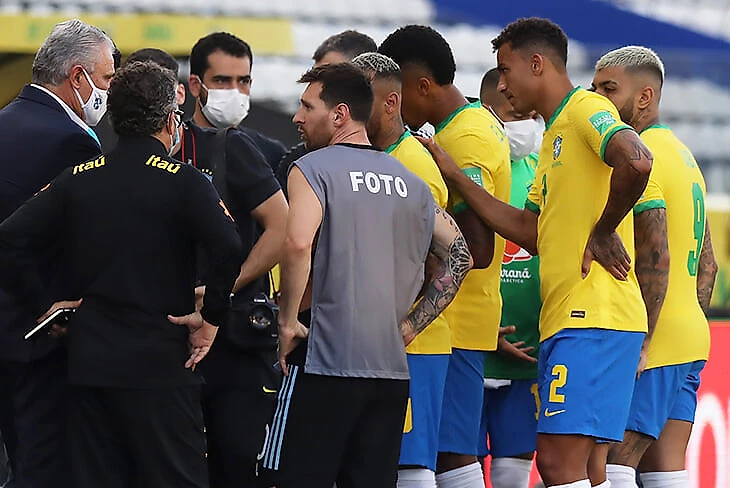 Матч Бразилия – Аргентина превратился в совсем не футбольное шоу: на 4-й минуте у поля появилась полиция, бразильские органы хотели арестовать четверых аргентинцев за то, что они нарушили карантинные правила и дали ложные сведения при пересечении границы.