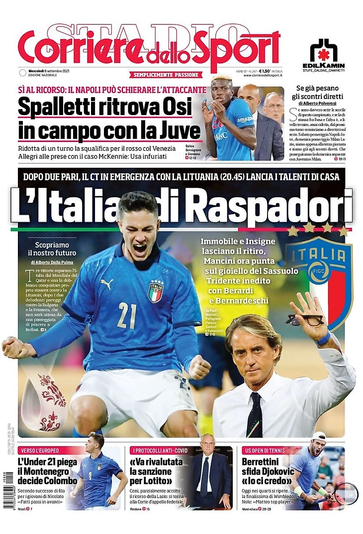 Италия Распадори. Заголовки Gazzetta, TuttoSport и Corriere за 8 сентября