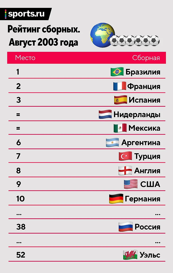 1. Как Мексика забралась так высоко? Все просто: в июле 2003-го они выиграли Золотой кубок КОНКАКАФ, в финале обыграв приглашенную Бразилию (1:0). Отсюда же и высокое место США – бронзового призера турнира.