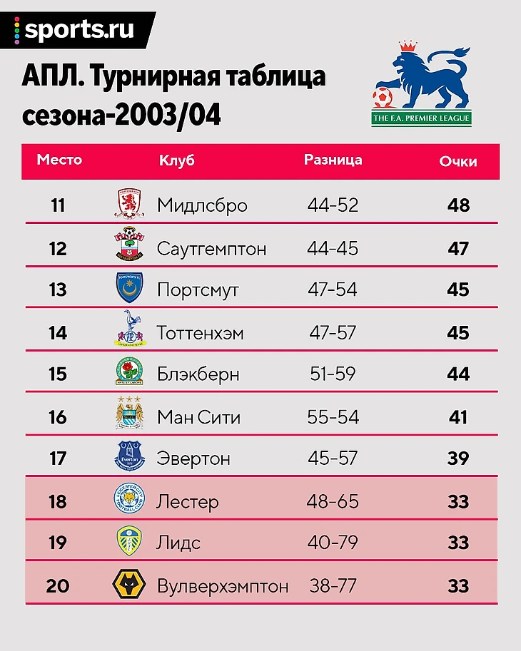 «Вест Хэму» тоже нечем похвастаться: в сезоне-2002/03 команда вылетела в чемпионшип и не смогла вернуться сразу – добрались до финала плей-офф, но проиграли «Кристал Пэлас». «Вест Хэм» вышел в АПЛ в 2005-м.