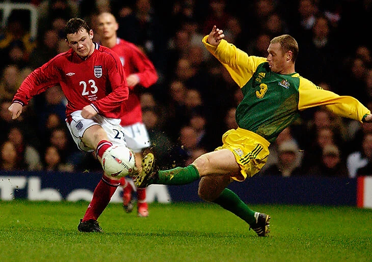 Уэйн Руни (еще не партнер Роналду) дебютировал в сборной Англии в феврале 2003-го.