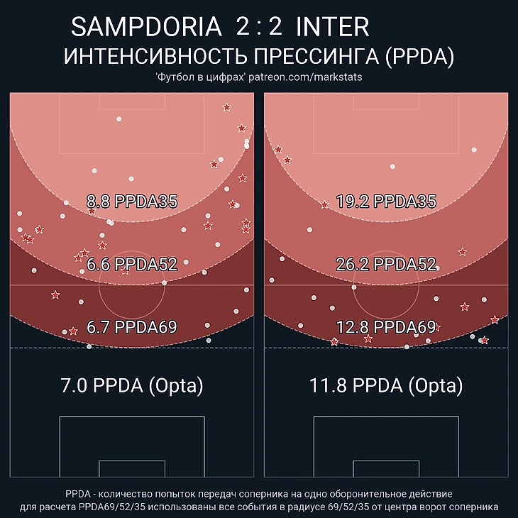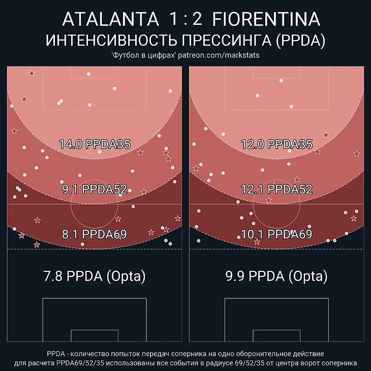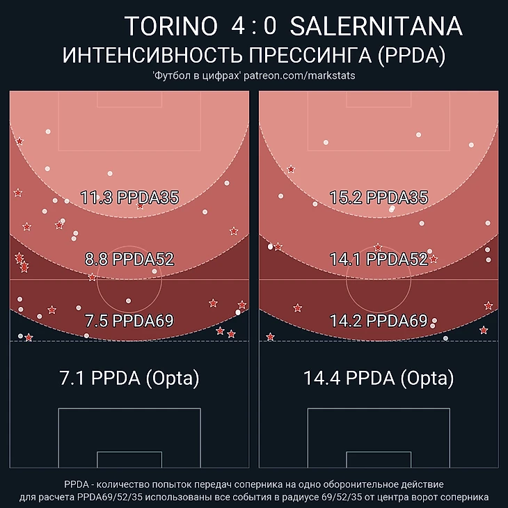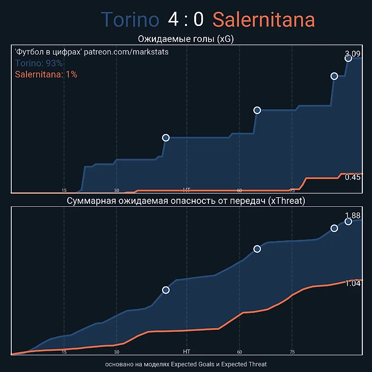▪ Вероятность победы: 13.11% - 68.5% ▪ Явные голевые моменты (opta): 2 - 4 ▪ Deep completions: 13 - 2 ▪ Наклон поля (field tilt): 75% - 25% ▪ PPDA (Opta): 4.8 - 10.4