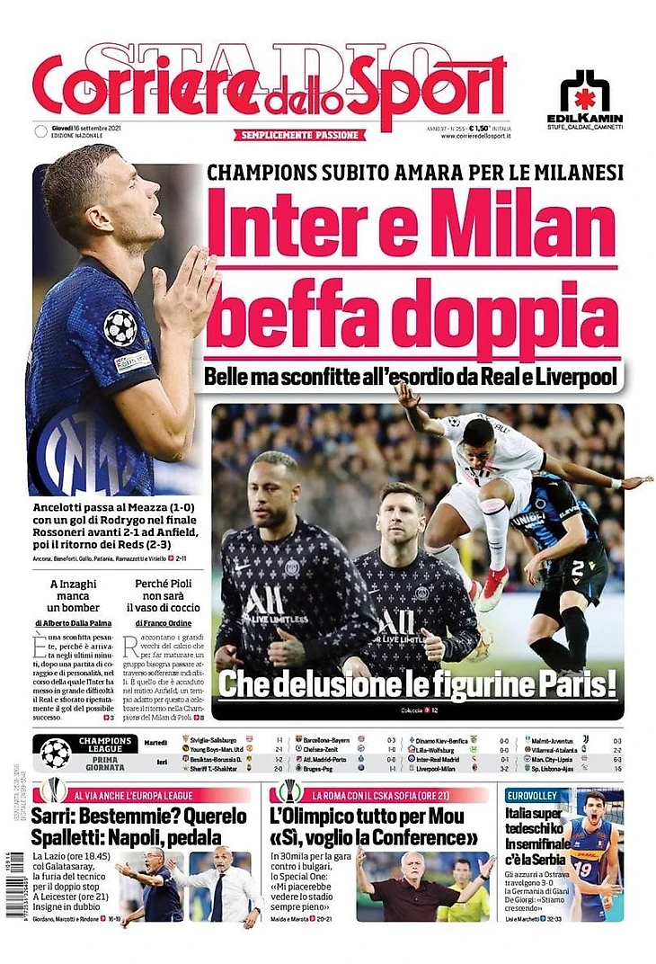 Поражения «Интера» и «Милана» в Лиге Чемпионов, а также сегодняшние матчи «Лацио» и «Наполи» в Лиге Европы и «Ромы» в Лиге Конференций – в утреннем обзоре заголовков итальянских спортивных изданий в блоге «В гостях у Кальчо».