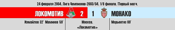 В сезоне Лиги Чемпионов-2003/04 жребий не жалел московскую команду. Все началось с донецкого «Шахтера», сопротивление которого «железнодорожники» сломили в квалификации. На групповом этапе «Локо» с боями прошел в плей-офф через киевское «Динамо», «Интер» и «Арсенал», и получил в соперники лидера чемпионата Франции – «Монако» Дидье Дешама. Княжеский клуб тоже изрядно пошумел осенью, а больше всего запомнился разгромом крепкого «Депортиво» с нефутбольным счетом 8:3. Долгое время этот матч оставался рекордным по результативности в Лиге Чемпионов.