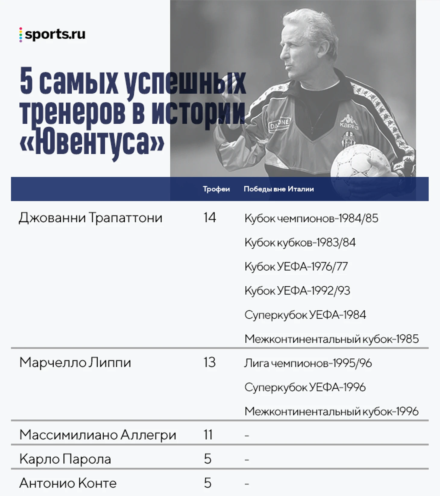 «Юве» не первый раз возвращает тренера-победителя, чтобы выйти из кризиса. Трапаттони провалился, а Липпи выиграл еще два скудетто, но не ЛЧ