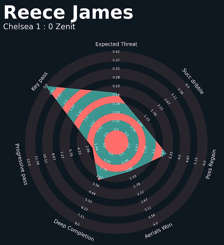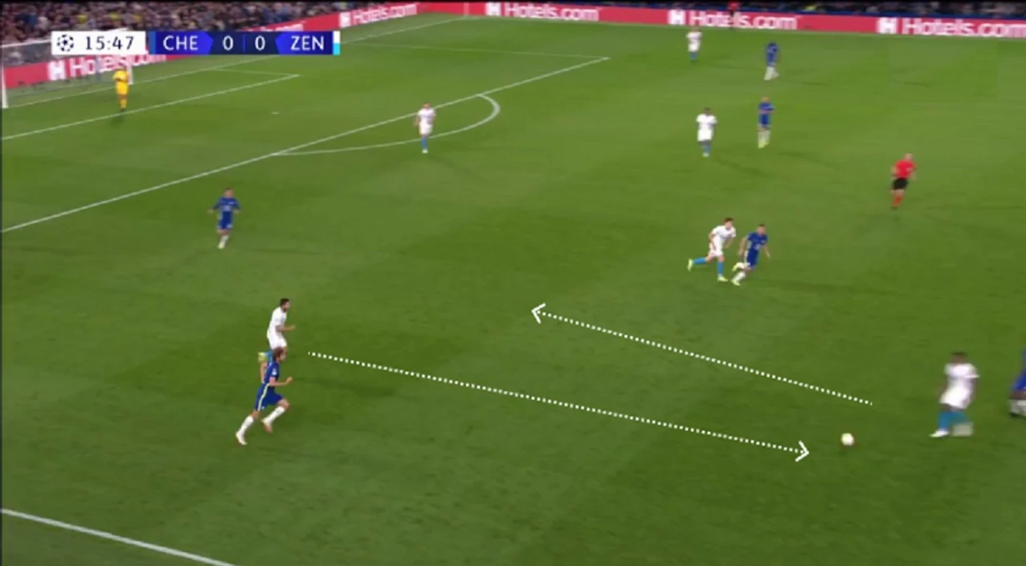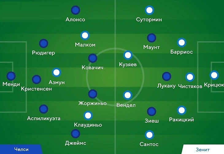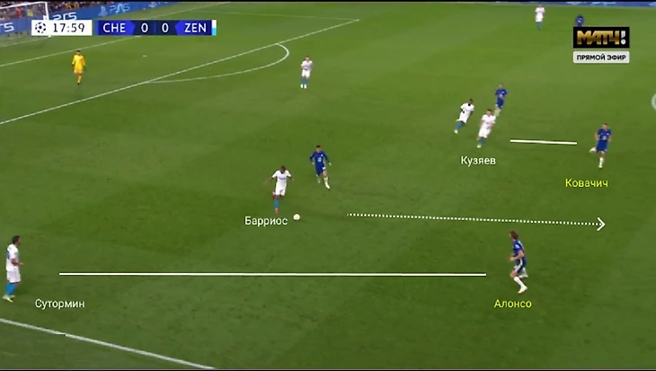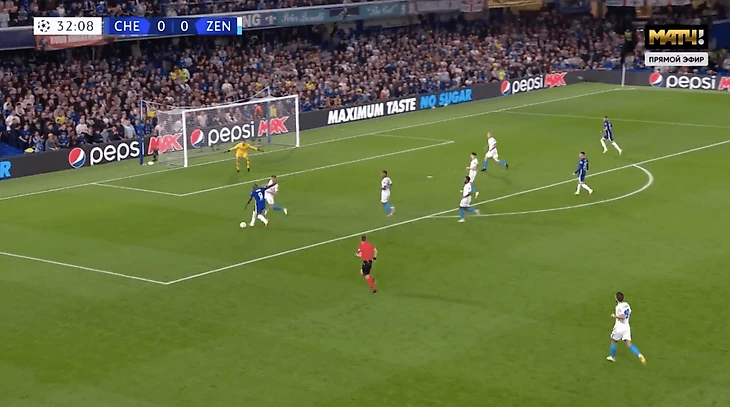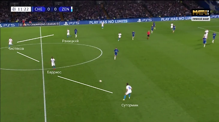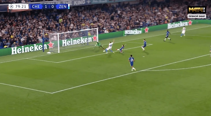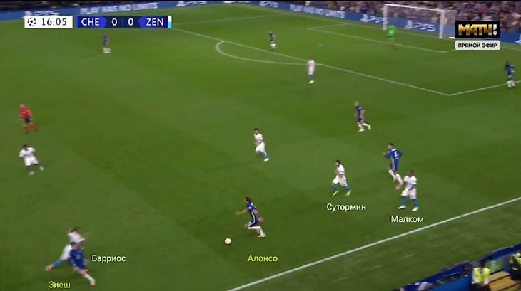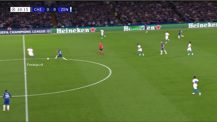 Команда Сергея Семака первые 10 минут второго тайма старалась очень высоко прессинговать, когда лондонцы разыгрывали мяч от ворот. Ковачич и Жоржиньо отходили к своим воротам, вынуждая Вендела и Кузяева подниматься за ними, оставляя за спиной множество пространства, которое с радостью использовали англичане. В один из подобных моментов у Рюдигера было столько пространства, что немец смог дойти до штрафной площади «Зенита» и пробить, однако мяч прошёл рядом со штангой