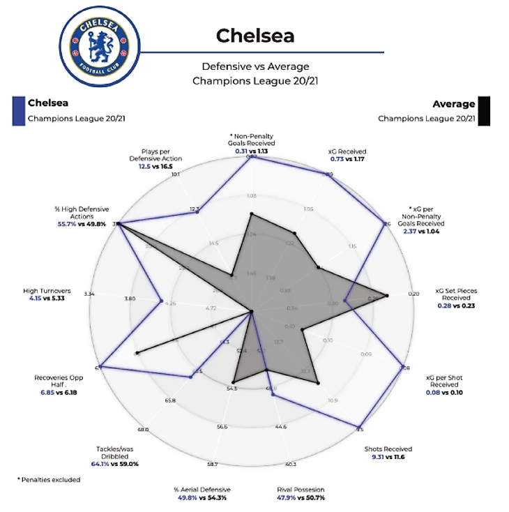 После первого тайма Томас Тухель явно нервничал, потому что у его команды не получалось использовать фланговые и полуфланговые каналы для фирменных разрезающих передач. Их система дала сбой против обороны, которая возможно проводила свой лучший матч. Однако, благодаря вариативности игроков в составе «Челси» смог измениться и переломить ход встречи. В этой ситуации «аристократов» спасли навесы крайних защитников на мощного Лукаку, вынуждая соперника садиться слишком глубоко.