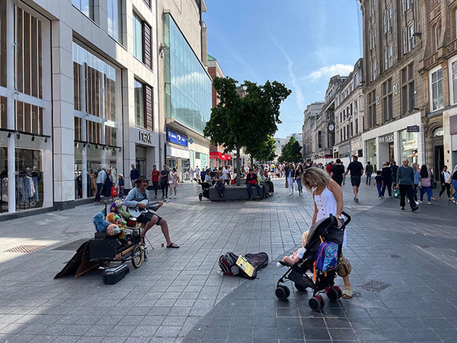 Эта логика британского градостроительства (забить центральную улицу любого города магазинами) удобна и прибыльна, но везде оставляет примерно одинаковое первое впечатление. С центрального вокзала вы сразу попадаете в толпу людей с пакетами из масс-маркета и уличных музыкантов, а ближе к вечеру приходится лавировать между компаниями, дрейфующими от одного бара к другому.