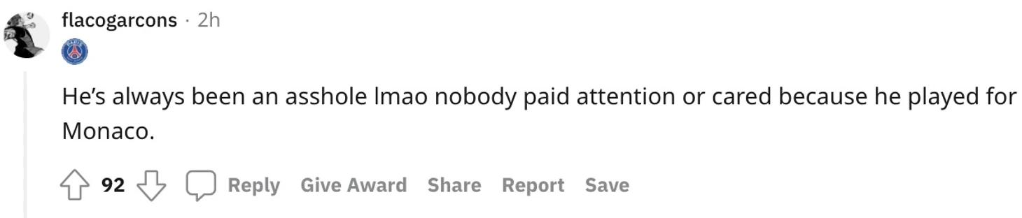 Он всегда был ##даком, но никто не обращал внимания, потому что он играл за «Монако».
