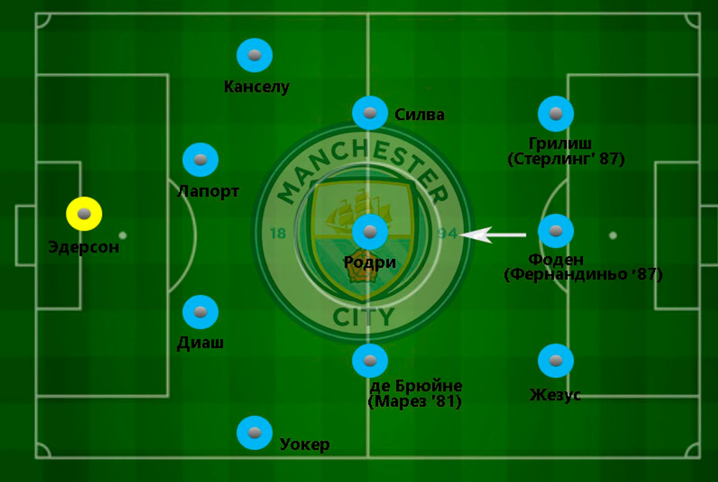 Гвардиола выставил следующий состав ( ниже подробно о фишках и конкретных ролях футболистов):