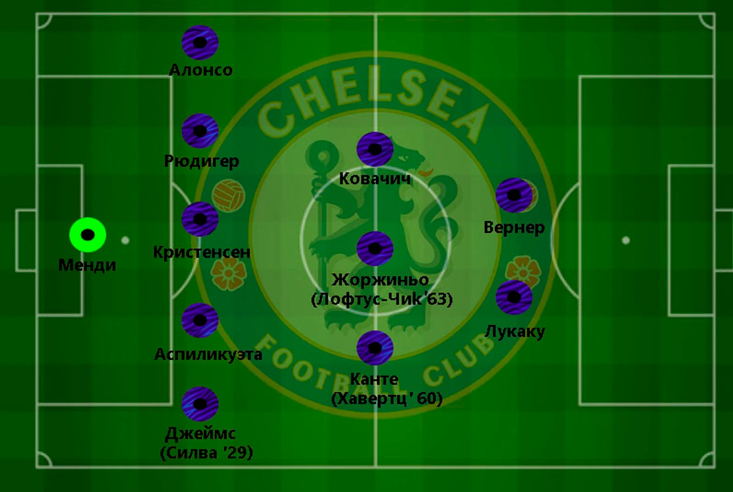И все же гол случился (снова отмечаем, что даже здесь была страховка и рикошет ), что взорвало игру на десять минут. Сюда уместилось спасение Силвы, выход Хавертца, который не оказал влияния на игру ( и отмененный гол) и переход «Челси» на 5-2-3, что оголило центр, ибо Ковачичу и Жоржиньо пришлось покрывать большие зоны, чем требовалось раньше: