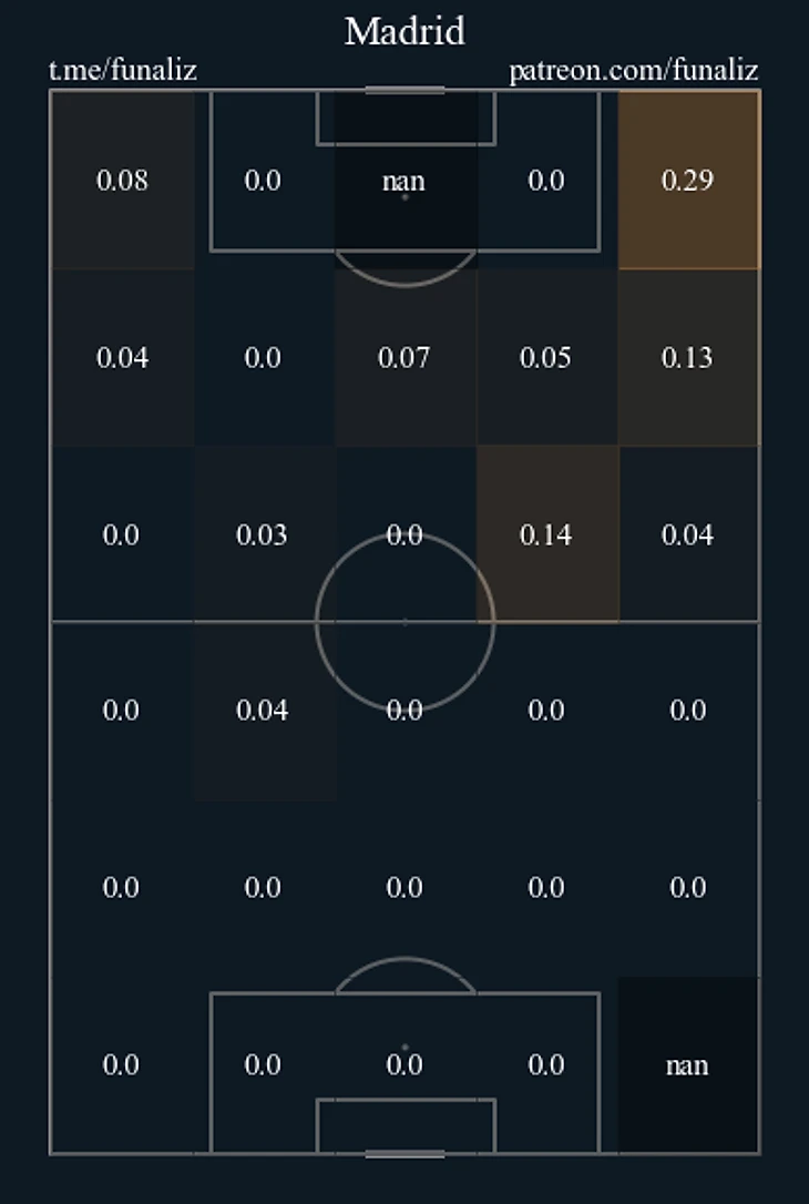 Конвертация точных передач "Реала" в зону в проникновение в радиус 20 метров от ворот соперника в последующие 10 секунд — у мадридцев всё очень смещено во фланг