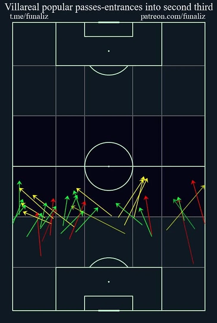 Топ-3 наиболее популярных передач-входов "Вильярреала" во вторую треть