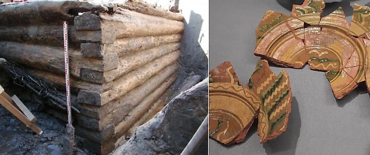 Фрагмент башни Ландскроны и артефакты, найденные на Охтинском мысу