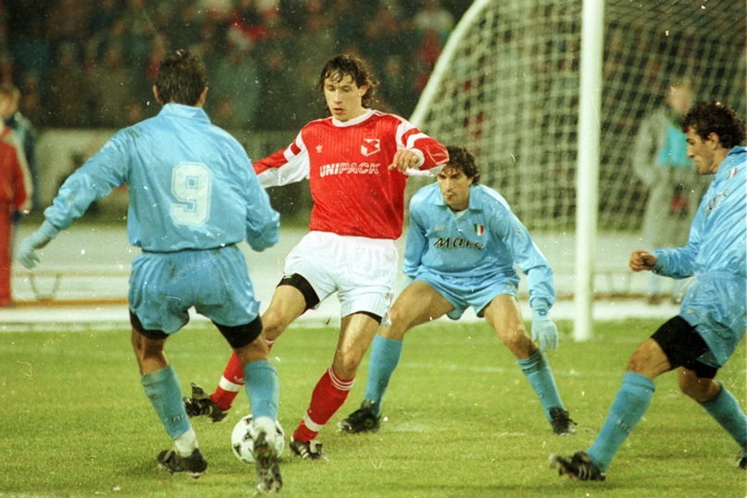 И осенью 1990-го в Кубке чемпионов принял старт заметно обновленный «Спартак». В первом раунде он уверенно обыграл по сумме двух матчей пражскую «Спарту». А вот во втором команде Романцева достался чемпион Италии «Наполи» с великим и ужасным Диего Армандо Марадоной.