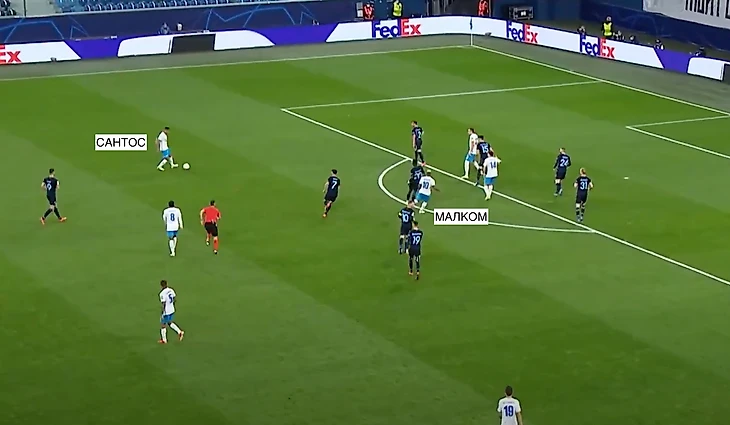 3. А ведь могли и пропустить Могли! С 10 по 25 минуту – худший отрезок команды в матче. Зенит вообще не владел мячом, а Мальмё создал пару неплохих моментов. Не похоже, что после гола игроки исполняли план на игру. Всему виной тактические нюансы, создающие хаос как в построениях Мальмё, так и Зенита. Очень много выбрасывался Чистяков и практически всегда неудачно, в результате верховую борьбу в штрафной вынуждены были вести Сантос, Сутормин и Барриос – не самые сильные в этом компоненте игроки. При этом с середины первого тайма и до конца матча работы у Крицюка не было.