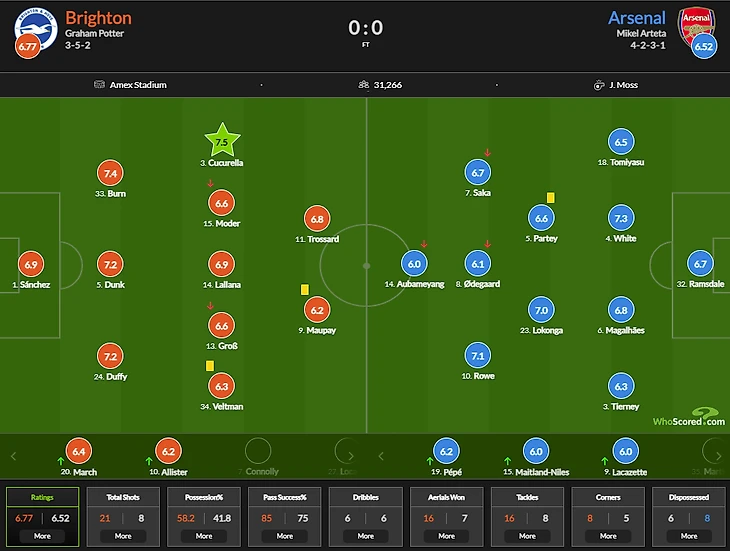 Брайтон и Арсенал скатали очень тугую и морально сложную ничейку.