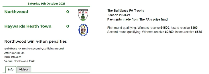 Следующие выходные оказались кубковыми - играли во 2-м квалификационном раунде FA Trophy. Не уверен что многие из вас слышали про такой турнир (я не знал о его существовании до того как не начал пост писать). "FA Trophy представляет собой соревнование на кубок по футболу среди мужчин, проводимое Английской футбольной ассоциацией и названное в его честь, в котором в основном участвуют полупрофессиональные команды." - перевод гугла так как не нашел информации на русском. Мы начинали с второго квалификационного раунда, жребий выпал играть против "Northwood FC" - клуб из высшего дивизиона нашей лиги. Тем не менее шансы у нас были, так как команда находится на дне таблицы.