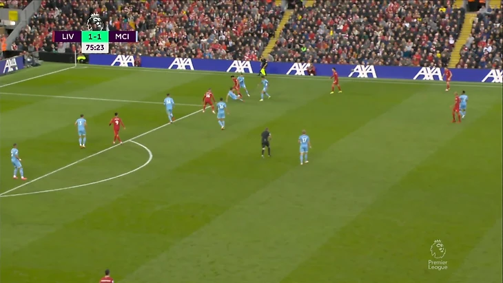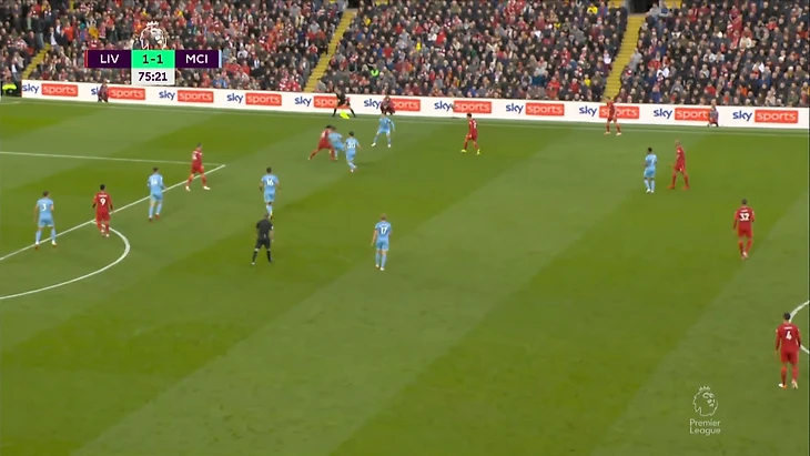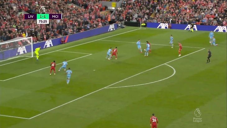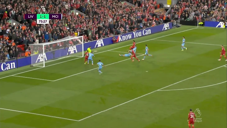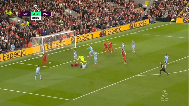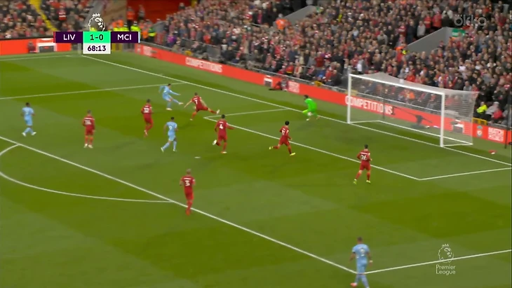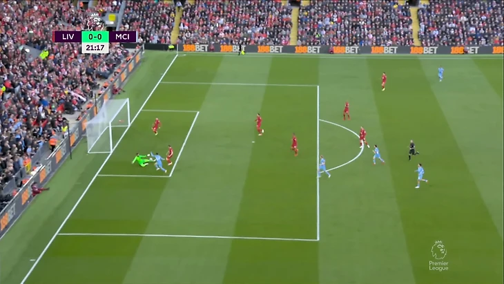 В итоге это вылилось в чрезвычайное преимущество. У Фодена в итоге был самый явный момент в первом тайме (Алиссон спас), еще пару раз Фил хорошо убегал от Милнера – даже было подозрение на пенальти.