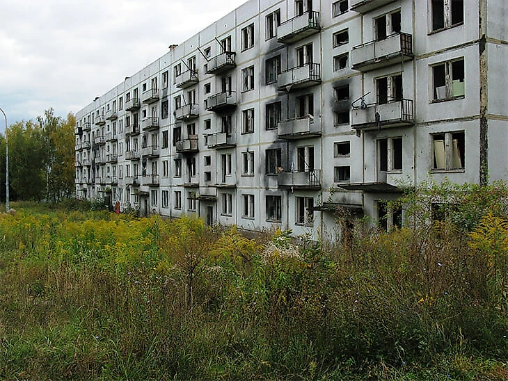 В Божи-Дар попадали только по пропускам, но микрорайон был самодостаточным: магазины, дом культуры, площадь с памятником Ленину. В 1990-е место забросили, зато его полюбили сталкеры, потому что добраться до Божи-Дара довольно просто, и он никак не охраняется.