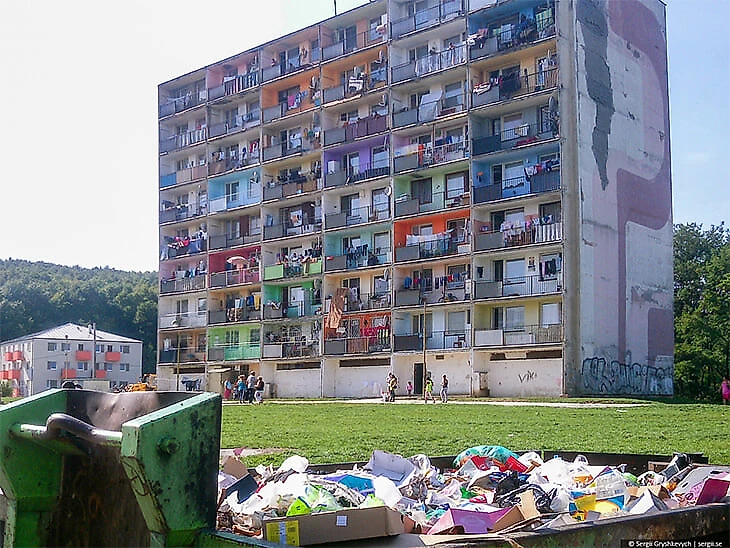 Доля цыган в стране относительно небольшая – около 2%. Но они проживают компактно, и некоторые районы напоминают гетто, куда чужаку лучше не соваться. Один из самых впечатляющих примеров – это Луник IX в Кошице, один из районов второго по величине города Словакии. До 1979 года цыгане проживали в соседней деревне. После того, как ее снесли, местных переселили в новое панельное жилье. Если в середине 1980-х цыгане составляли половину населения района, то сегодня это моноэтнический анклав с высоким уровнем преступности и отвратными санитарными условиями. Здешние почти не работают, при этом они не платят аренду и коммуналку. Проблему решают с середины 1990-х, но пока не очень успешно. В 2018 году словацкая пресса писала, что водителям рейсовых автобусов, которые проезжают через Луник IX, доплачивают за риск – слишком часто в этом месте нападают цыгане.
