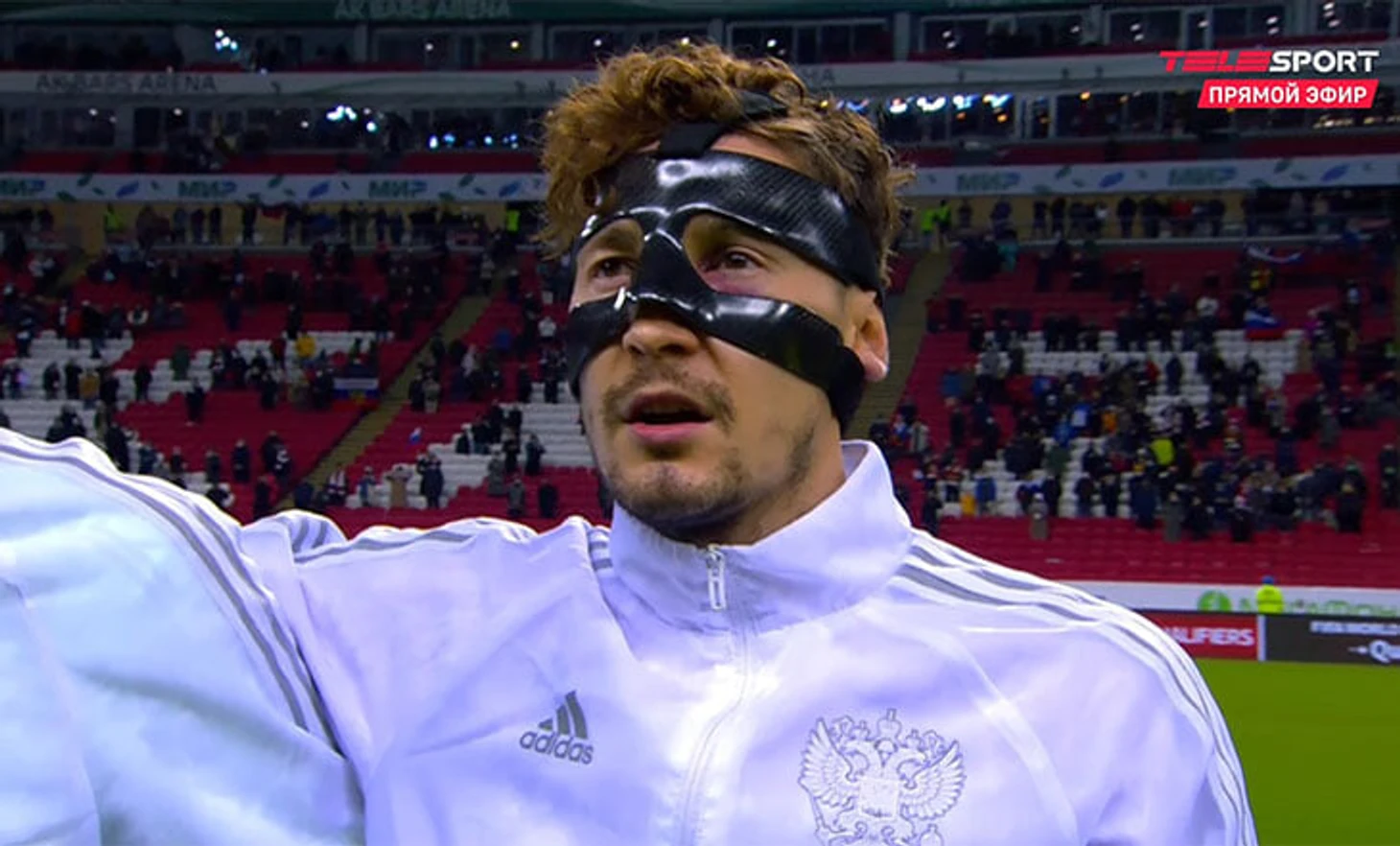 Капитан команды играет в маске, из-под которой четко виден синяк под левым глазом.