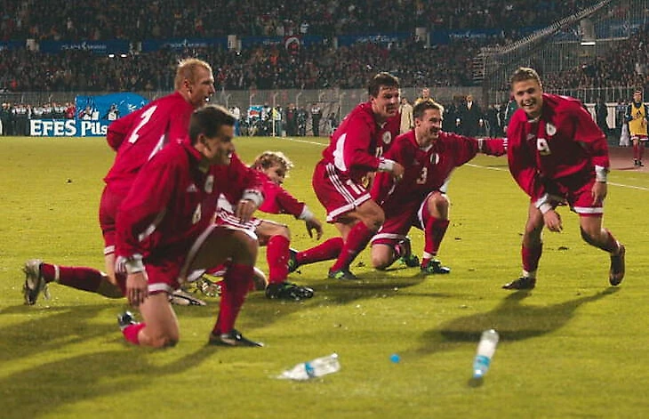 •‎ Именно в стыках с Турцией в 2003-м Латвия выбивала себе путевку на Евро-2004 – команда Александра Старкова выиграла 1:0 дома и ушла с 0:2 в Стамбуле: Юрис Лайзанс и Марис Верпаковскис забили по голу за 12 минут и подарили себе историческую поездку на Евро.