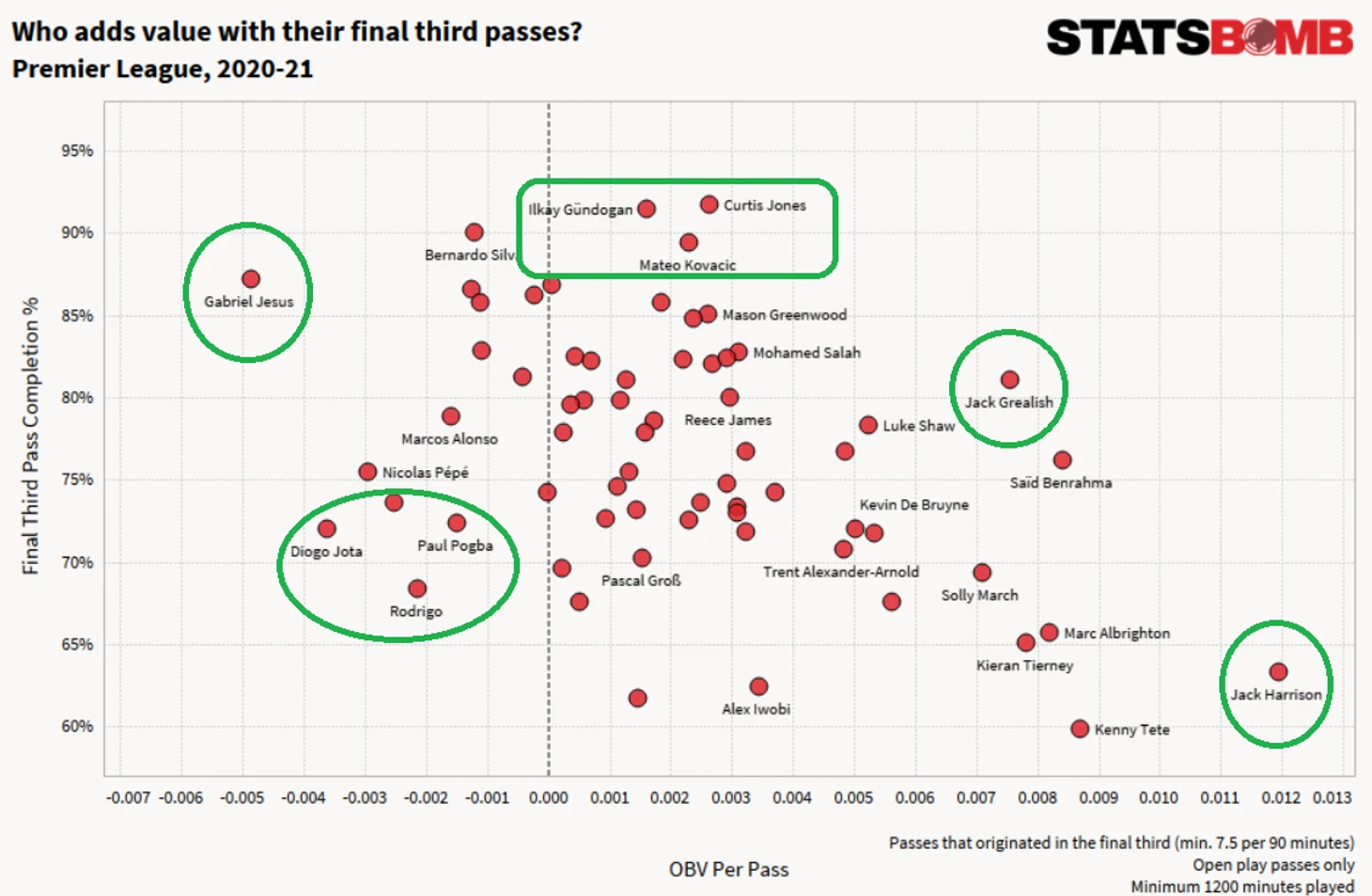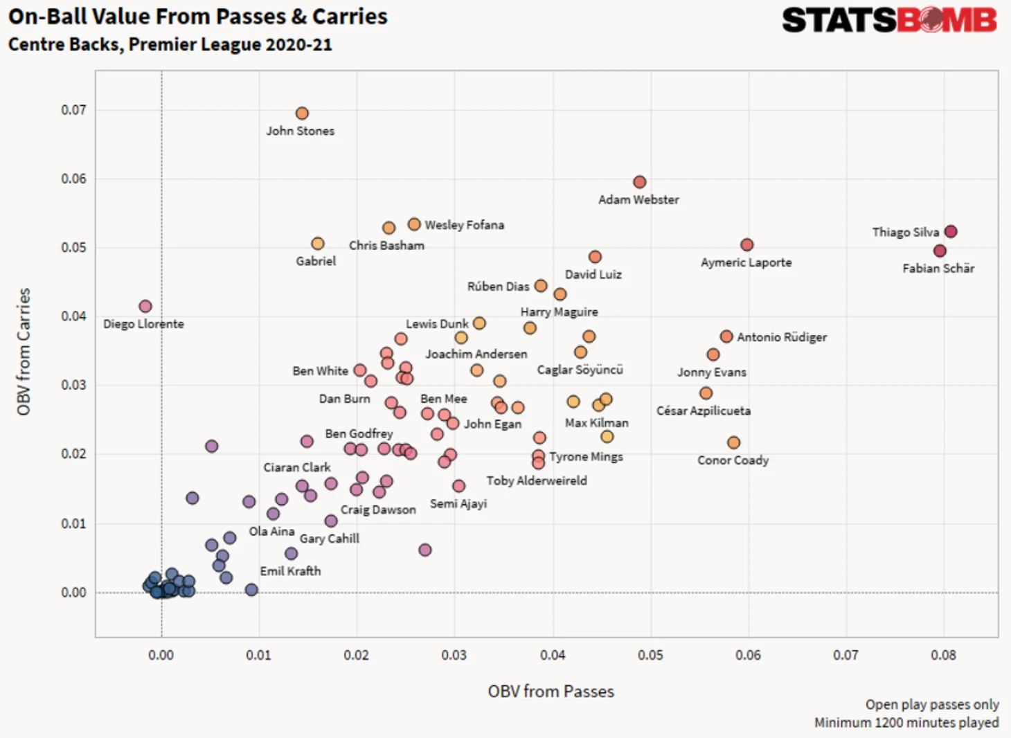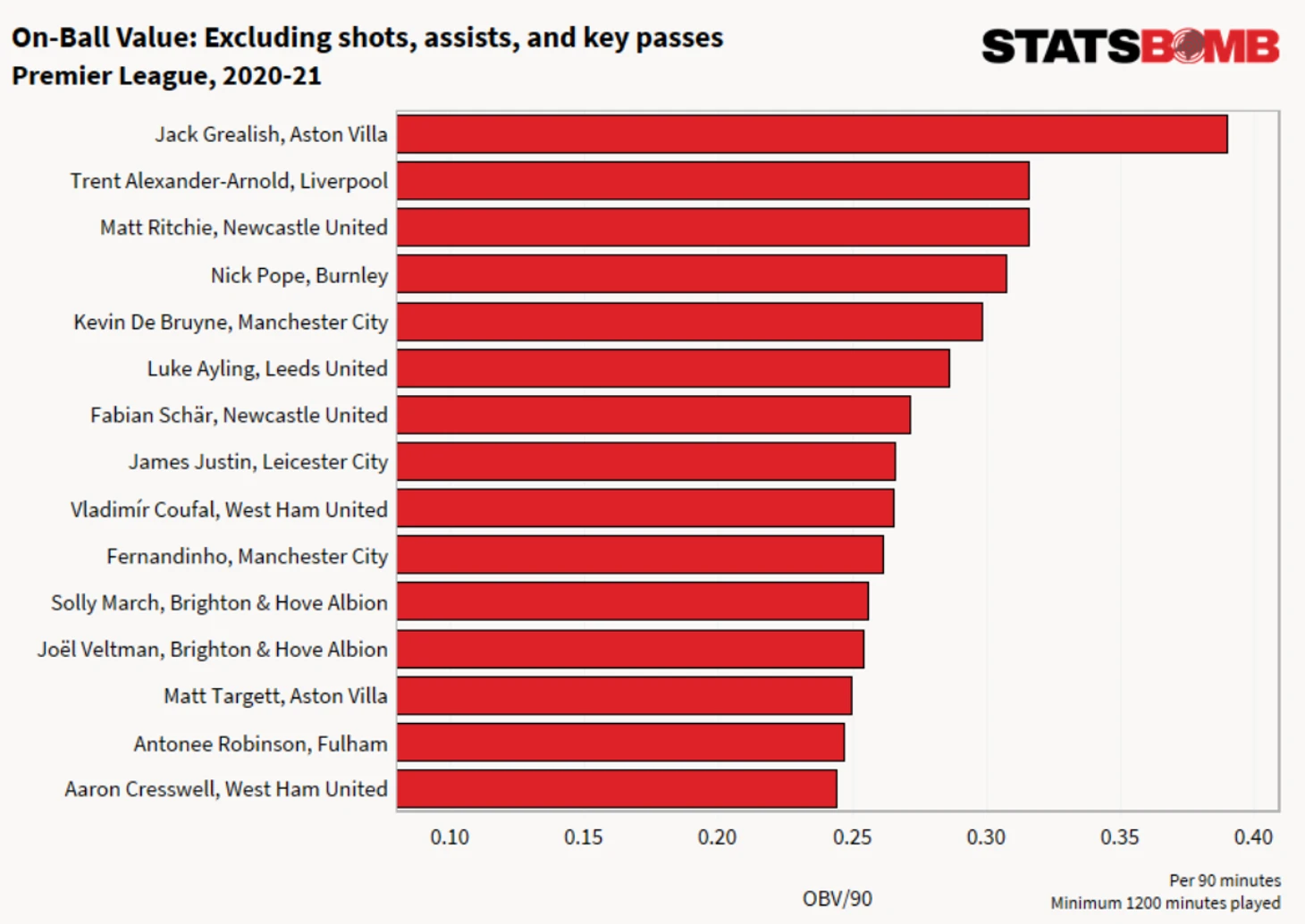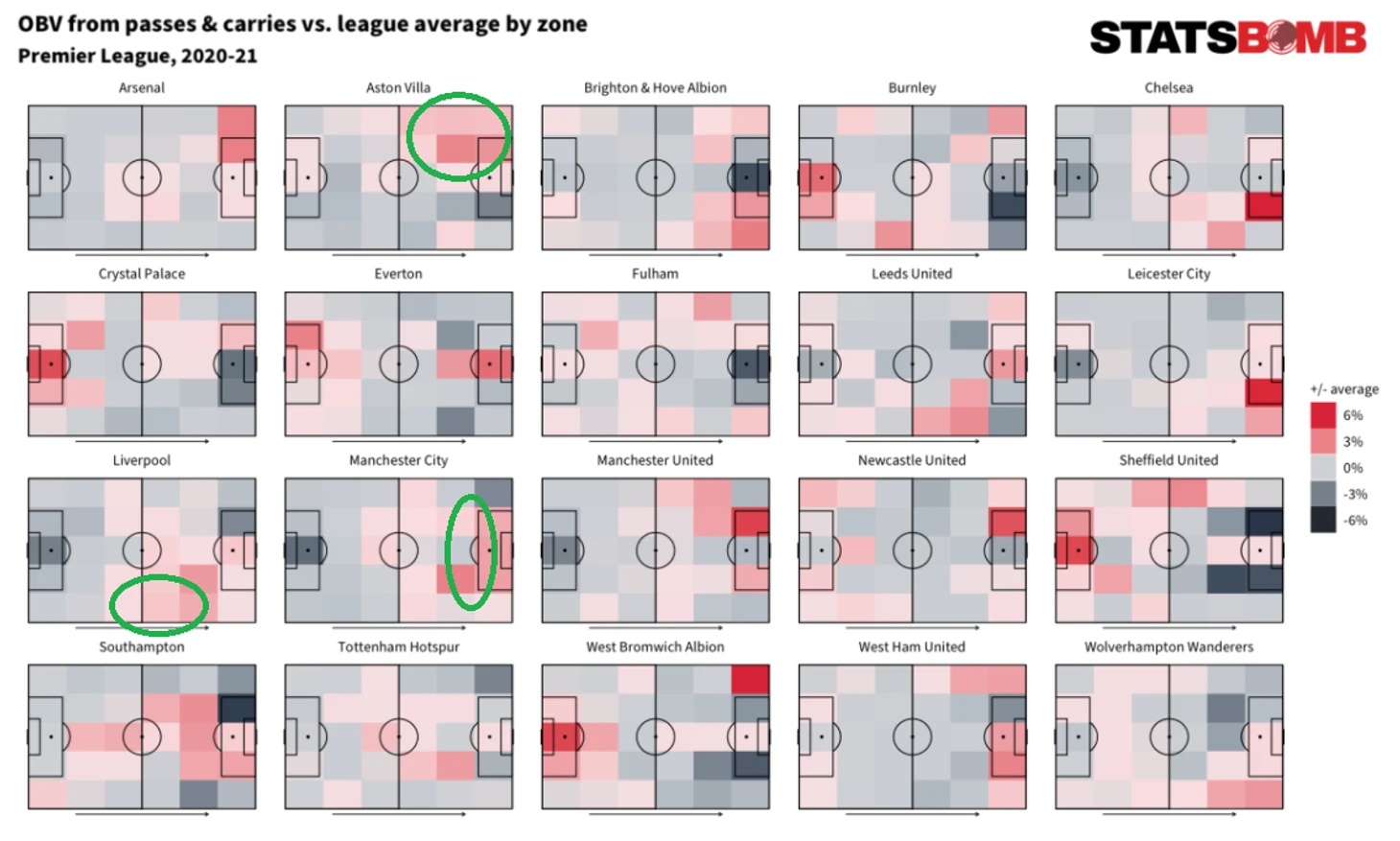 Недавно на StatsBomb была опубликована еще одна статья про модель OBV. На этот раз авторы решили сфокусироваться на ее практическом применении и рассмотрели прошлый сезон АПЛ 2020-2021.