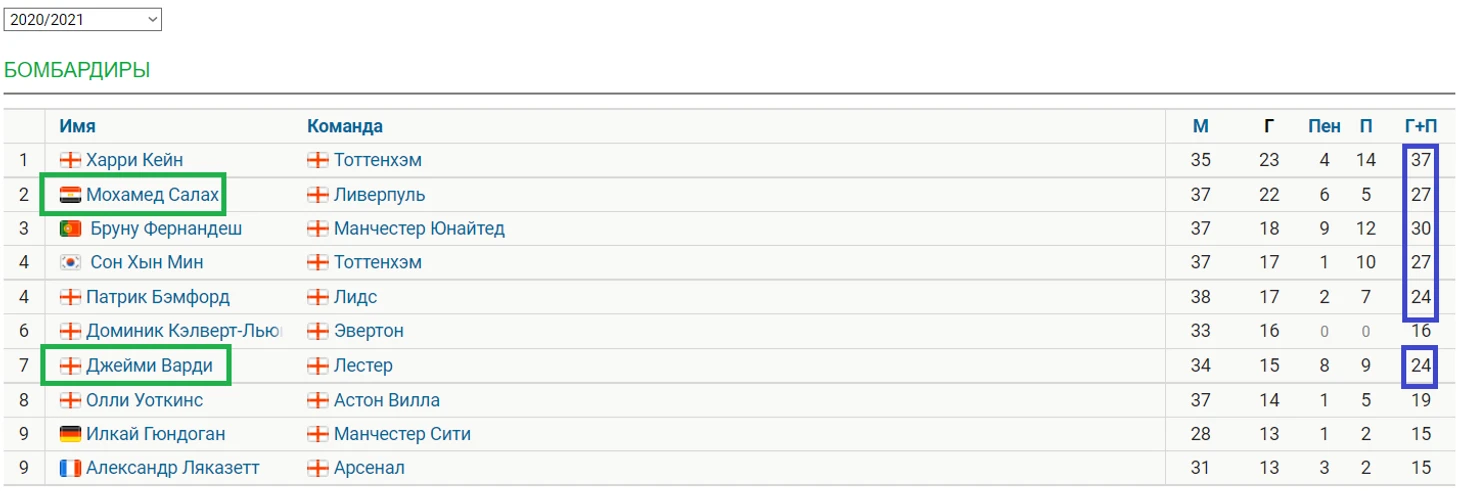 OBV не смещена в сторону самых очевидных атакующих действий - голов и ассистов, а учитывает все действия внутри атаки. Например, из топ-6 игроков по системе гол + пас прошлого сезона АПЛ в рейтинге есть только два игрока - Салах и Варди, но отсутствуют Кейн, Бруну, Сон и Бэмфорд