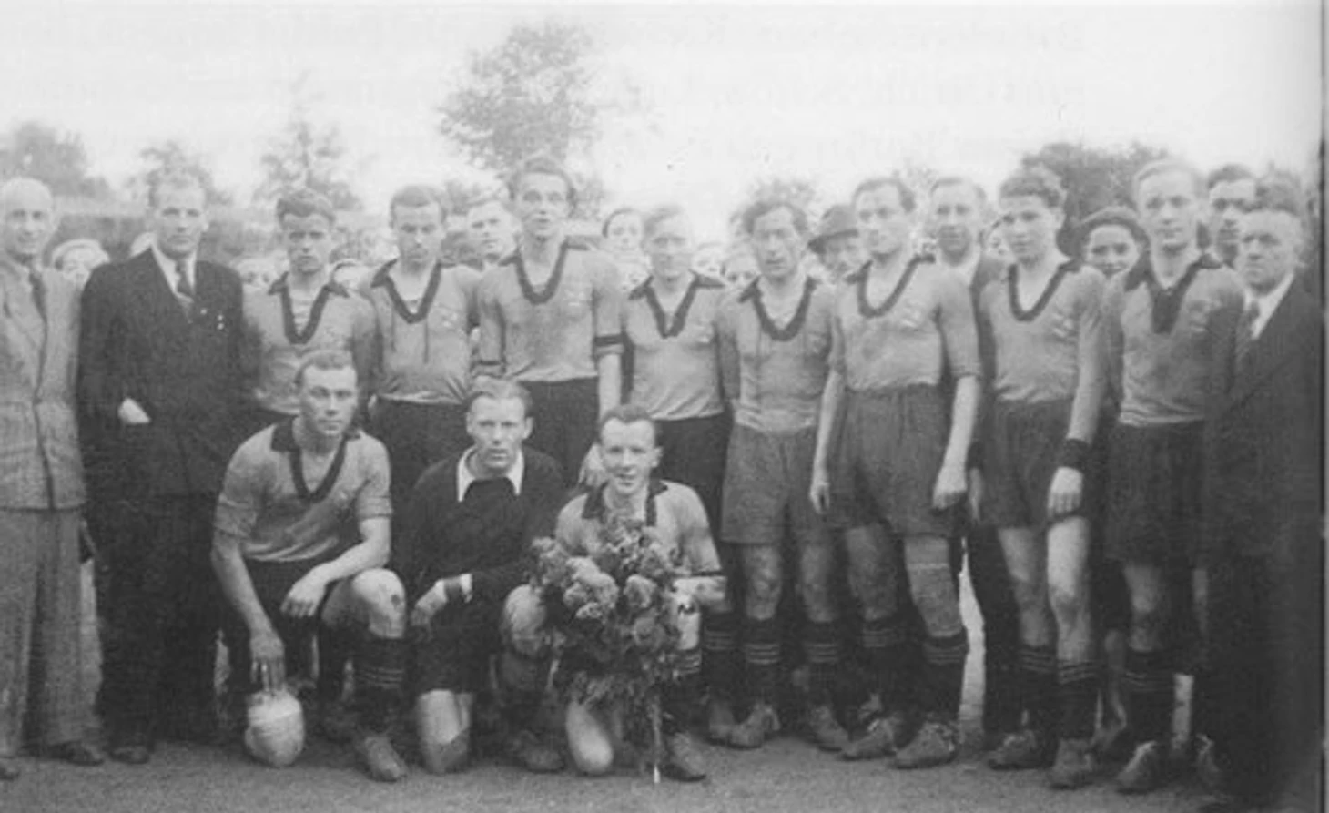 В британской зоне дела порой обстояли еще жестче. Знаменитая «Вестфалия Херне», выступавшая вместе с «Шальке» и «Дортмундом» в Вестфальской Гаулиге на протяжении большей части 1930-х годов, сохранила название, но потерял все остальное, включая, буквально, футболки. Стадион и все принадлежавшее клубу оборудование были конфискованы, а один английский офицер даже потребовал сжечь их форму. С другой стороны, историк из Хамма (город в 40 километрах к северо-востоку от Дортмунда) позже вспоминал, как один британский солдат подарил ему и его друзьям бесценное сокровище — блестящий новый мяч в 1945 году, сказав, что причина его щедрости в том, что дома он играл за «Манчестер Юнайтед». В ноябре 1945 года представительная команда 53-й дивизии встретилась с «Шальке 04» перед 35 тысячами человек в Вуппертале (немцы выиграли 2:1), в то время как в Бонне 5-я гвардейская бригада даже приняла участие в окружной лиге из семи команд, которая стартовала в том же месяце.