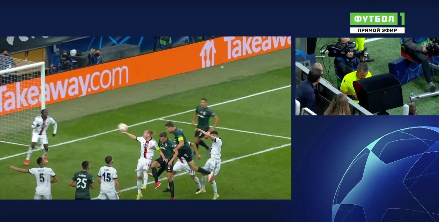 В конце первого тайма угловой снова принес «Спортингу» пользу. На Коатеса опять опасно подавали, и уругваец чуть не оформил хет-трик, но в дело вмешалась рука Домагоя Виды, в которую попал мяч. Арбитр назначил пенальти после просмотра ВАР. Пабло Сарабия забил с точки.