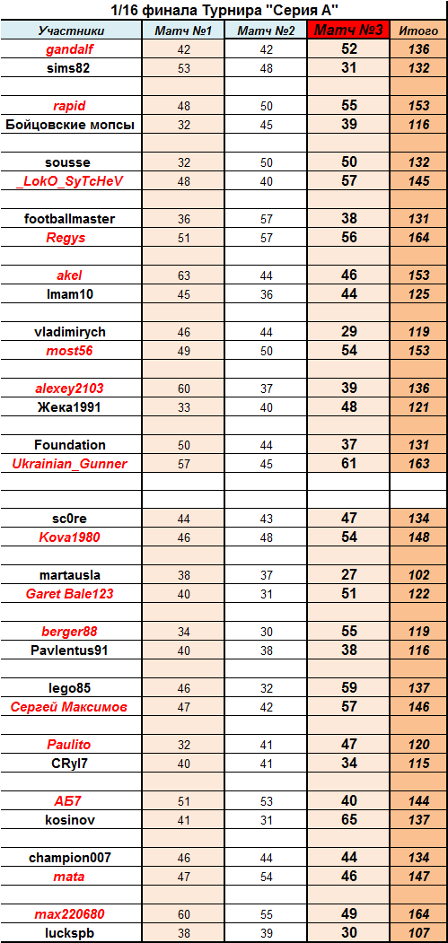 В рамках прошедшего 25-го тура прошли третьи (и заключительные!) матчи 1/16 финала Турнира H2H Calcio Fantasy, принесшего следующие результаты: