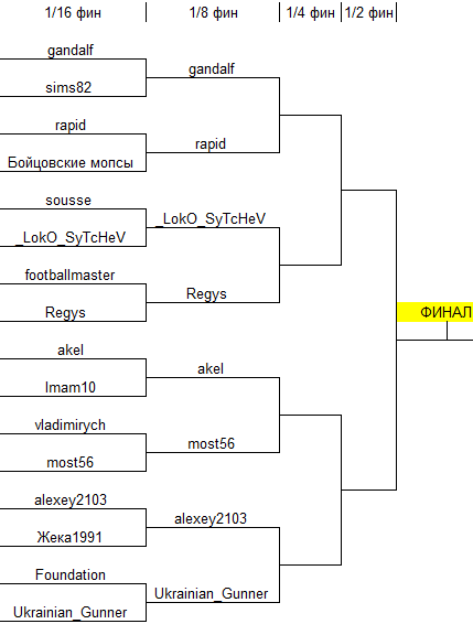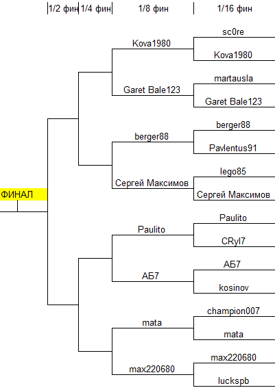 Таким образом, сетка Турнира со стадии 1/8 финала будет выглядеть так: