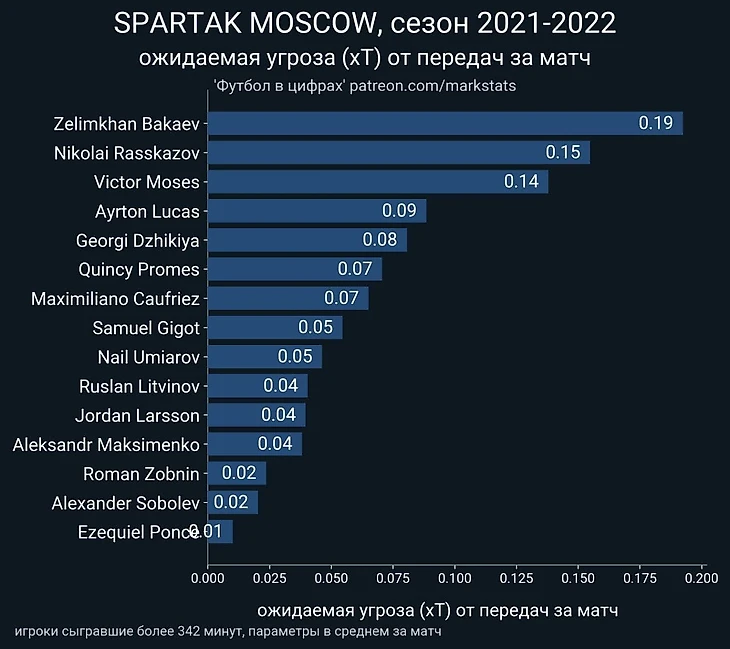 Также стоит отметить, что Бакаев по xT занимает четвертое место во всей лиге.