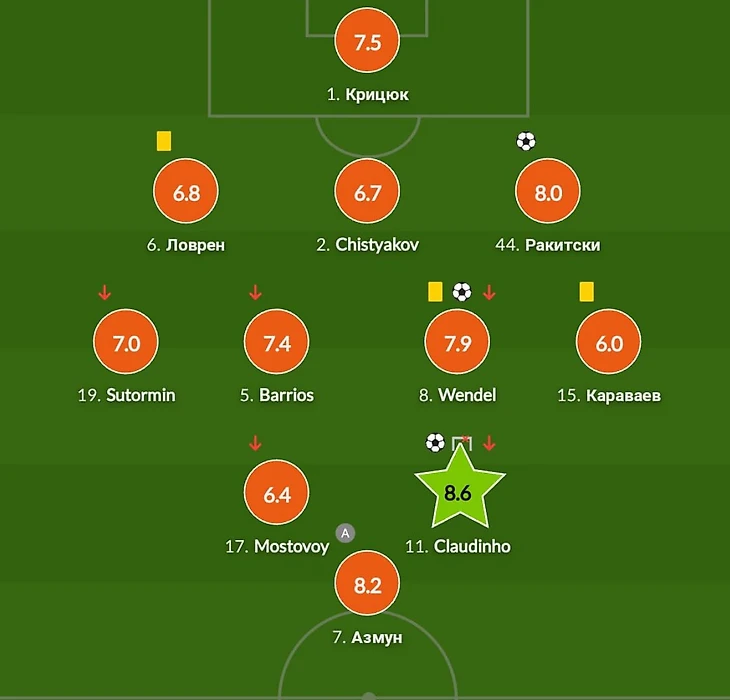 Дальше Ярослав Ракицкий в своём 100 матче за Зенит решил поставить точку в этом матче своим великолепным голом со штрафного. Стоило бы отметить, что Ярослав с сезона 19 года не забивал со штрафного и после его последнего штрафного, команда Сергея Семака не забивала со штрафного 2 сезона, но Ракицкий положил конец этой серии, а все уже начали забывать, как он может положить штрафной.