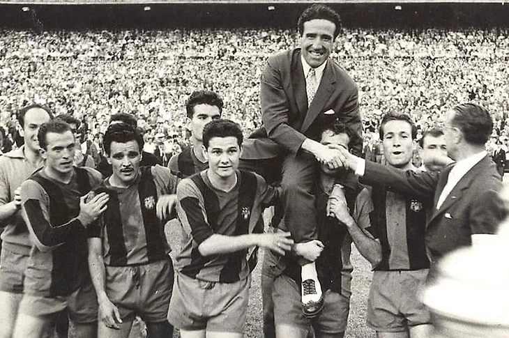 3) Эленио Эррера, "Интер". В 1960-ом году Эррера возглавил «Интернационале», с которым достиг наибольших успехов в тренерской карьере. Именно в этой команде специалисту удалось довести до совершенства исповедуемую им тактику катеначчо (что в переводе с итальянского означает «замок»), подразумевающую игру от обороны с редкими, но максимально эффективными контратаками. Данная тактика подразумевала отход от персонального метода опеки соперников и наличие на поле игрока у которого не было опекаемого, в задачу которого входило подчищать ошибки своих партнёров. Именно это нововведение позволило Эррере совершить революцию в футболе. При этом Эленио не был догматиком и в матчах с заведомо слабыми соперниками мог позволить свои подопечным играть в более свободной манере, а «Интер» демонстрировал достаточно результативный футбол.