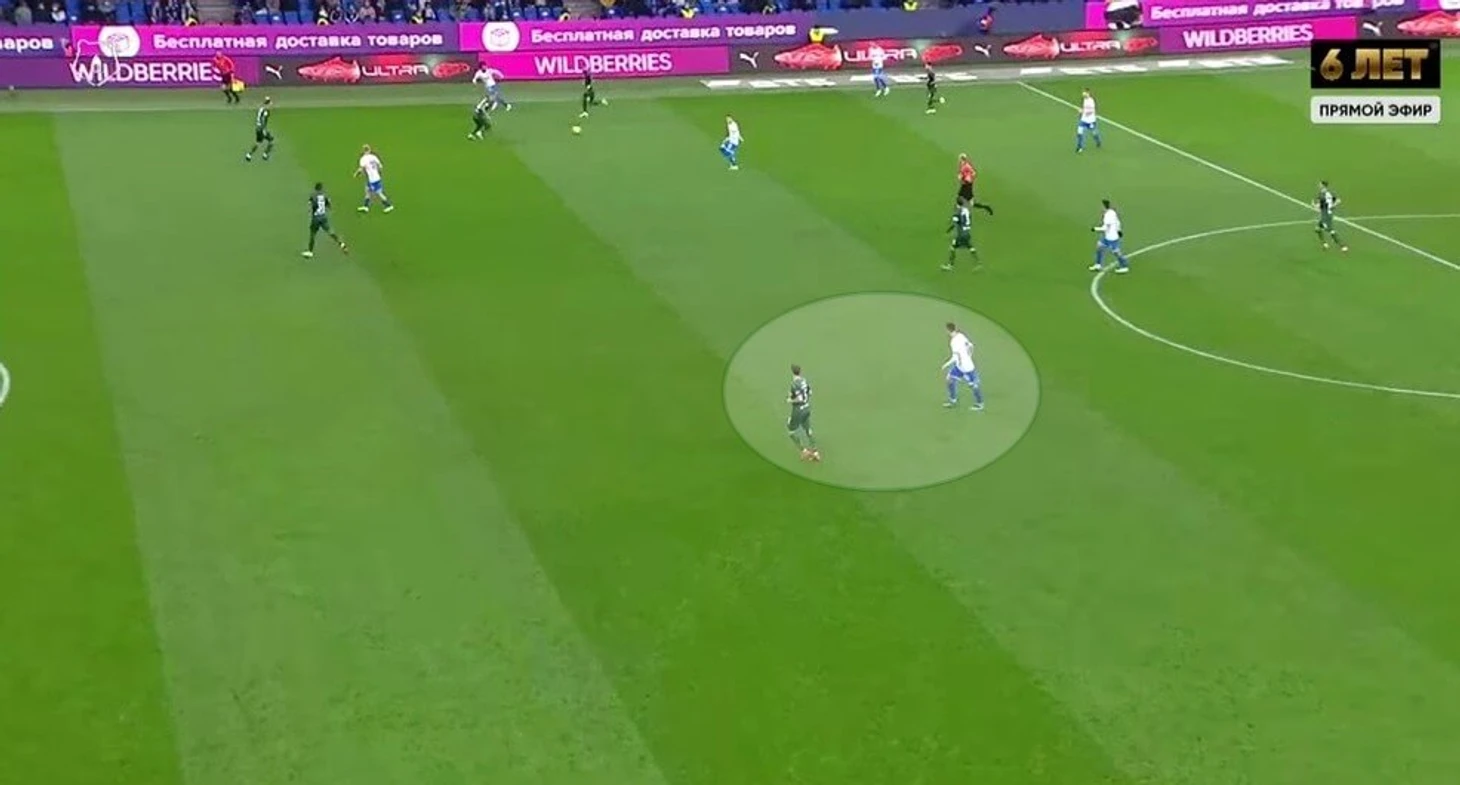 «Краснодар» атаковал ассиметрично – Вильена с позиции левого защитника шел высоко, а Спайич при владении чаще располагался в средней трети. Это могло помочь лучше справляться с контратаками, но снижало возможности команды в атаке. Так или иначе, гости осторожно использовали фланговых защитников.